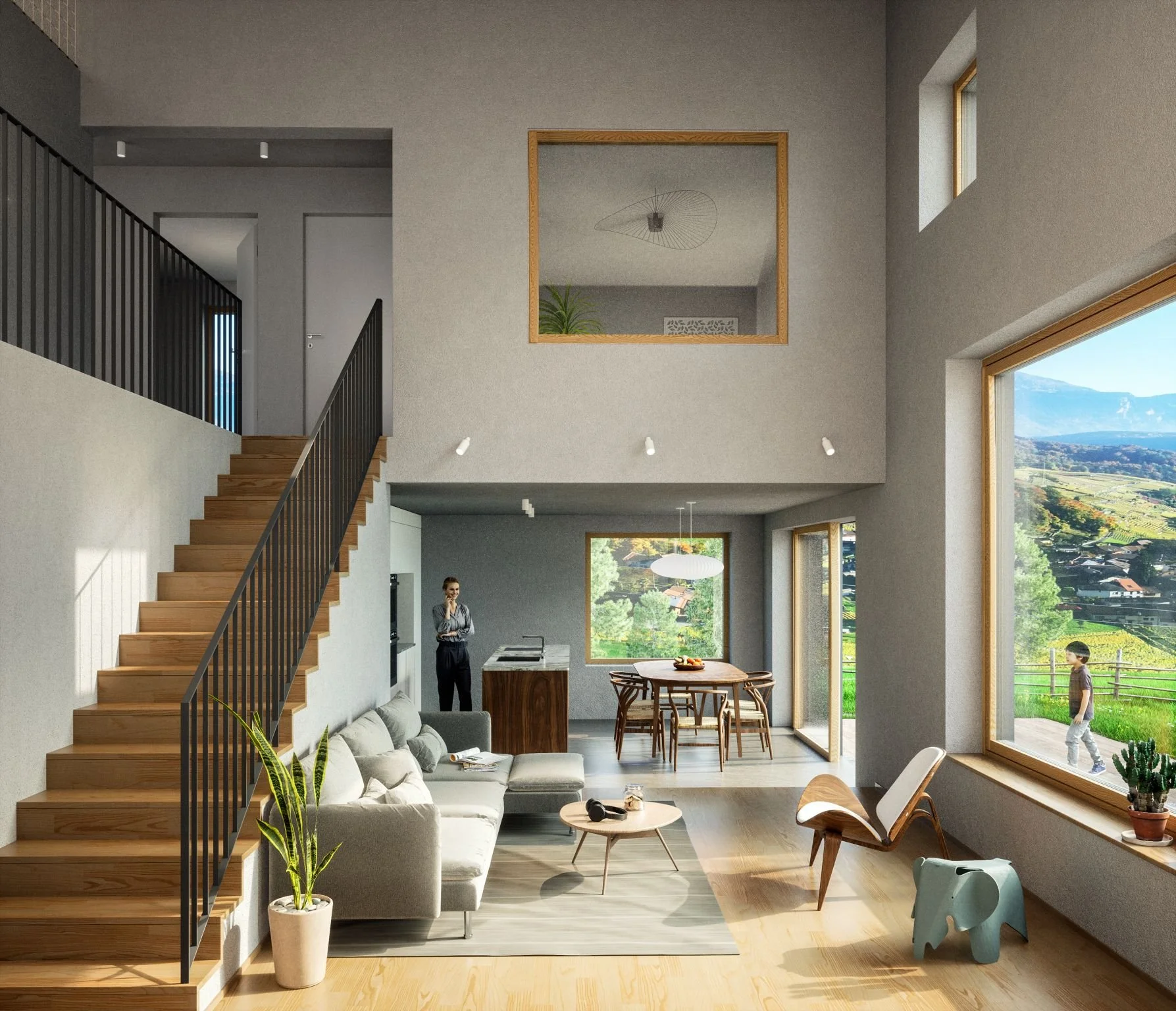 A friend of mine, architect Jimmy Tran, asked me to create an exterior and interior rendering of his house to be built in Corgémont, Switzerland.